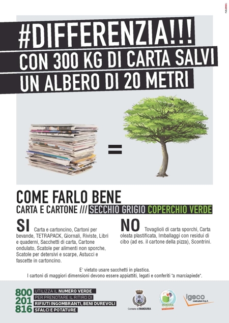 Domani, 8 dicembre 2020, il servizio di raccolta della carte si svolgerà regolarmente. La raccolta inizierà un pò prima del solito, di conseguenza, invitiamo tutti i cittadini ad esporre i mastelli entro questa sera.
