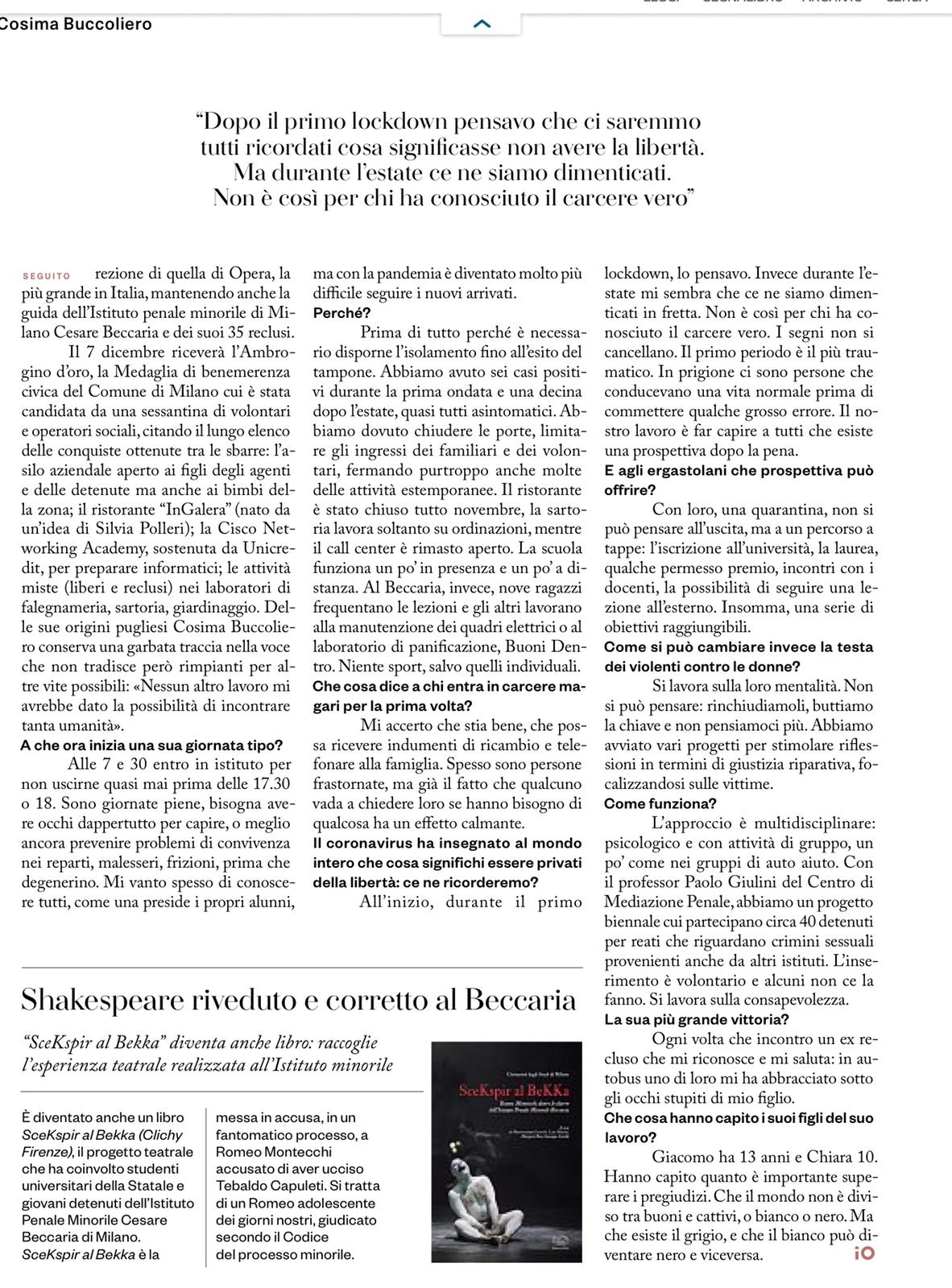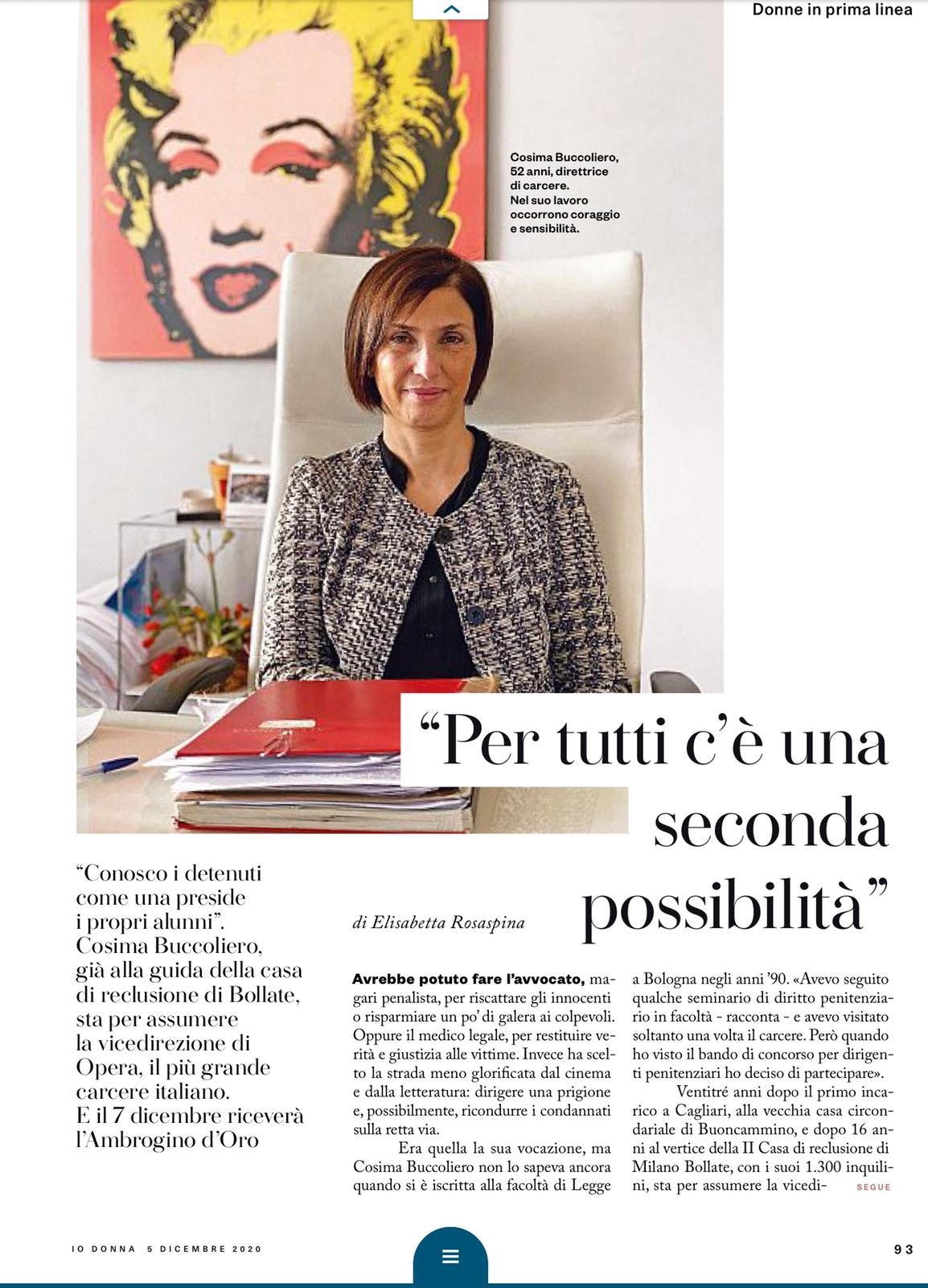 Il video con la motivazione alla base del riconoscimento. Una recente intervista rilasciata dalla dott.ssa Buccoliero, direttrice del carcere di Bollate, alla rivista “Io donna”