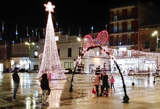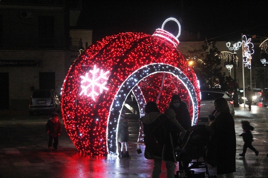«Pur nelle difficoltà del momento che viviamo e nella ristrettezza di risorse a disposizione, abbiamo cercato comunque di “illuminare” questo Natale 2020» afferma il sindaco Gregorio Pecoraro. «Nelle foto gli addobbi, che ci saranno anche in alcune piazze periferiche, nella frazione di Uggiano, in S.Pietro in Bevagna e a Torre Colimena».