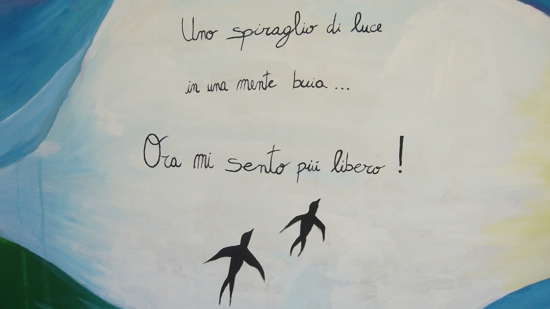 “Uno spiraglio di luce in una mente buia. Ora mi sento più libero!”. È il messaggio che campeggia sul murale realizzato all’interno del carcere di Lecce nell’ambito di “Arte in libertà... oltre le sbarre”, progetto di arte-terapia coordinato dall’Ufficio Integrazione Disabili dell’Università del Salento e promosso in collaborazione con la Casa Circondariale di Borgo San Nicola (Lecce). Il racconto del percorso condiviso da studenti e detenuti che ha portato a questo felice esito (alcune immagini in allegato) sarà oggetto dell’incontro online in programma giovedì 17 dicembre 2020 alle ore 16 suhttps://bit.ly/3qAMgNV.