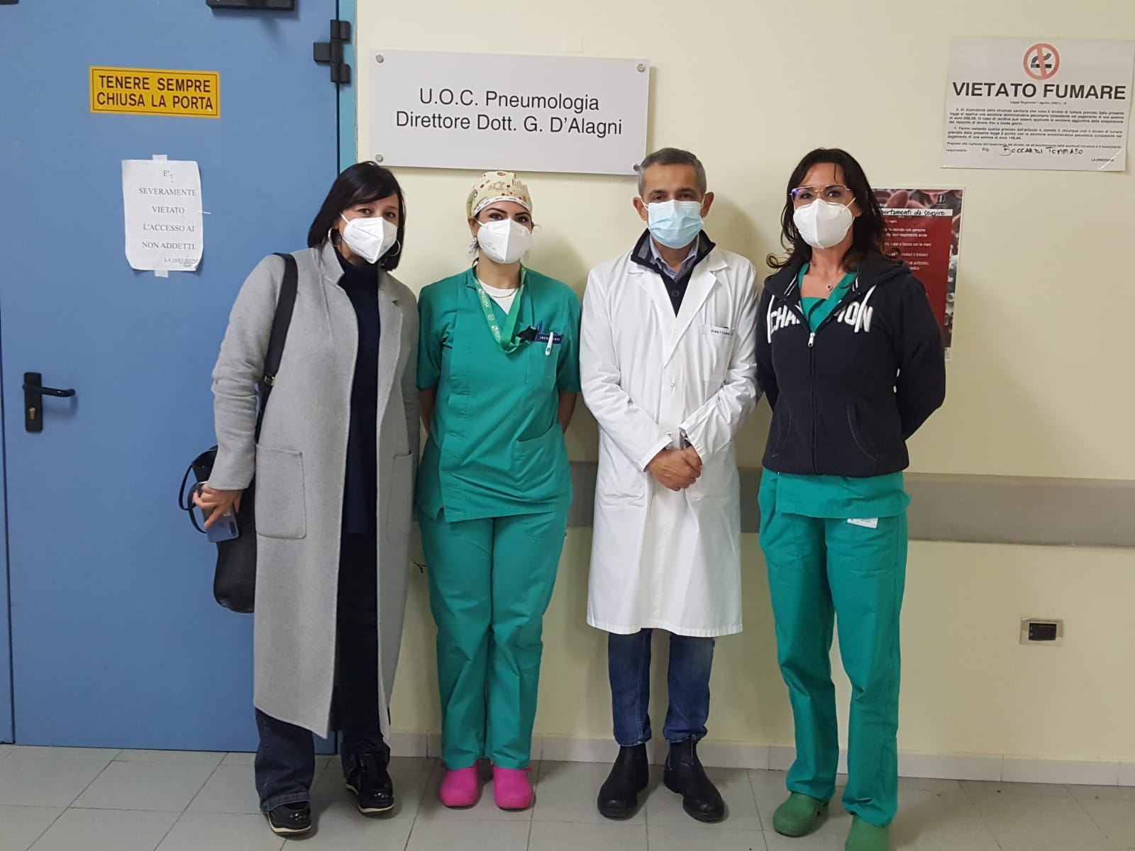Il dottor Giancarlo D’Alagni, direttore della UOC di Pneumologia, esprimendo apprezzamento e soddisfazione per la solidarietà che da subito ha circondato i medici ed il personale sanitario, ha così commentato: “è straordinario l’affetto e la vicinanza manifestateci dai cittadini e dalle Istituzioni nei periodi più difficili di questa emergenza. È grazie al loro sostegno che abbiamo trovato la forza per superare le molteplici difficoltà incontrate e spingerci oltre i nostri limiti, nel tentativo disperato di fronteggiare un nemico insidioso, dagli effetti devastanti per il genere umano e per cui non esiste ancora una terapia specifica realmente efficace. Le nostre speranze sono riposte in quella che si preannuncia la campagna vaccinale più imponente di tutti i tempi, che è appena iniziata e che dovrebbe dare i suoi risultati non prima che si sia immunizzata la maggior parte della popolazione”.
