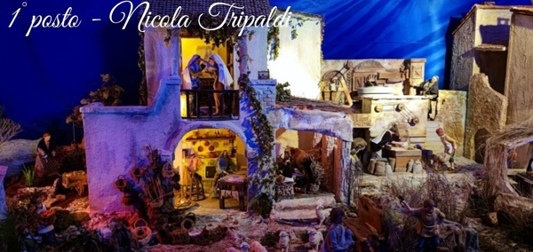 1° posto - Nicola Tripaldi: Presepe che stupisce per la sua estensione. L’ambientazione è molto particolare e accurata, con vari edifici e molta attenzione per la verosimiglianza storica dei dettagli. Anche il mobilio visibile attraverso le finestre è reso in maniera realistica e rispecchia l’arredo tipico del mondo popolare e contadino di una volta.