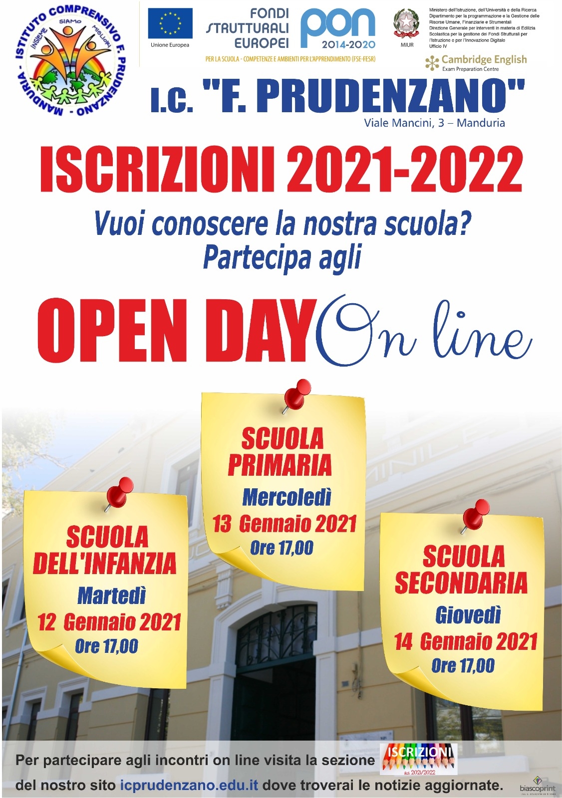 Saranno chiaramente fornite le indicazioni necessarie per effettuare le iscrizioni ai tre ordini della scuola (Infanzia, Primaria e Secondaria di primo grado), mentre sul portale, al link https://www.icprudenzano.edu.it/iscrizioni-2021-22 è possibile trovare tutta la documentazione necessaria.
