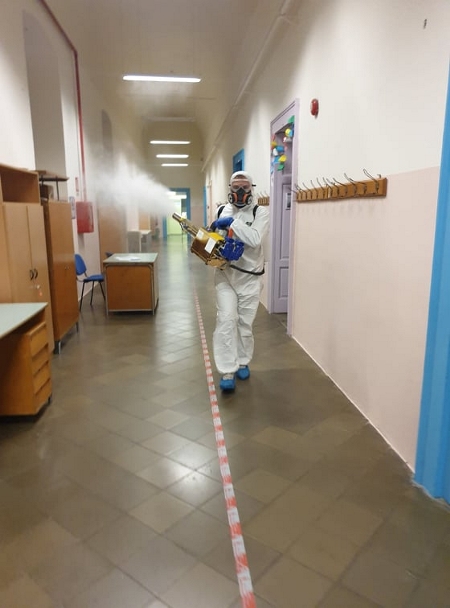 Nella giornata di ieri, pur essendo festiva, la scuola è riuscita a sanificare gli ambienti (come si può vedere nella foto), grazie alla tempestiva disponibilità dell’azienda “RP Sanificazioni” dell’ing. Riccardo Parco, consentendo così la regolare ripresa delle lezioni già da stamani.
