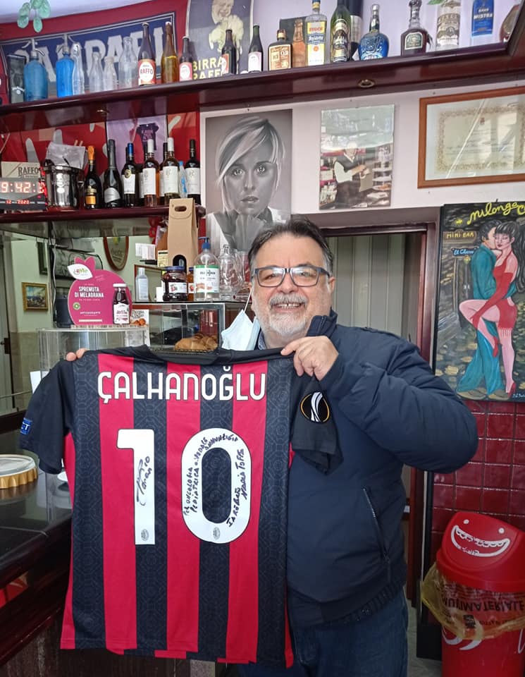 «I ragazzi tifosi del Milan saranno felicissimi. Mi è arrivata la maglia autografata da Calhanoglu, che ringraziamo insieme al nostro amico Thomas Molendini, per i bambini del reparto di Oncoematologia Pediatrica “Nadia Toffa” del SS. Annunziata di Taranto, che presto consegneremo», scrive Ignazio D’Andria su Facebook, insieme agli amici del Mini Bar Taranto mostrando con orgoglio la maglia autografata che verrà poi consegnata all’ospedale.