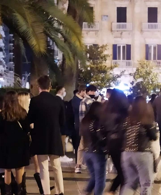 «Un sabato sera nel centro di Taranto con tantissima gente per strada, molti - soprattutto giovani- con le mascherine abbassate o addirittura senza».
