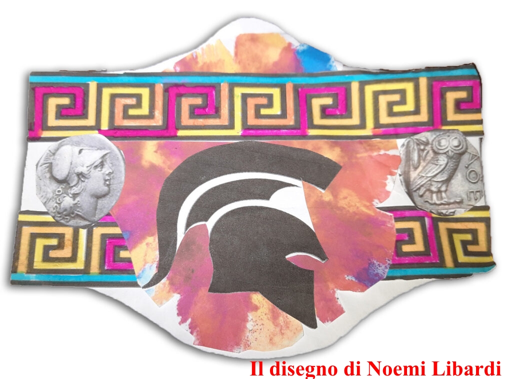 «Nel mio disegno ho riprodotto, come cornice, le mura greca» ci riferisce Noemi Libardi, il cui disegno ha ricevuto quasi 2mila like attraverso facebook e che riceverà come premio un tablet. «Ai lati ho disegnato due statere: da una parte la dea Atena e dall’altra la civetta di Atene. Infine, al centro, il profilo dell’elmo spartano. Ho scelto come tecniche quella della pittura (in particolare con i colori viola e giallo) e quella dell’assemblaggio.