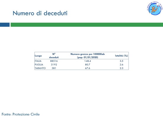DECESSI – In provincia di Taranto si sono registrati, complessivamente, 381 decessi.