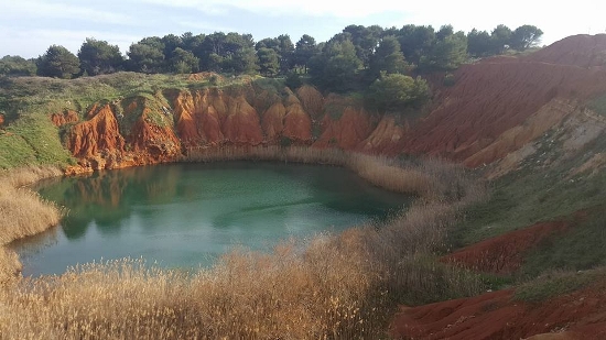 Nascosto in questo angolo pazzesco si trova un laghetto, un piccolo occhio di acqua dal colore unico che va dal blu cobalto al verde smeraldo. La natura in questo posto si è rimpossessata di ciò che le era stato tolto e con fare unico ha reso una cava di bauxite anonima un luogo meraviglioso.