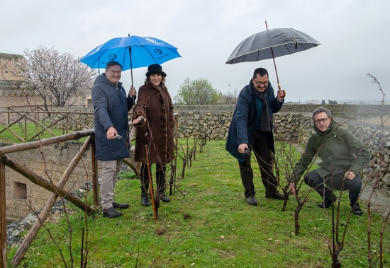 Un circuito virtuoso territoriale e planetario tra produzione di qualità, cultura, turismo, questo è in sostanza il Vigneto sul Castello. È un progetto nato dalla collaborazione tra la Cupertinum Cantina di Copertino, la Soprintendenza per i beni architettonici e paesaggistici di Lecce, Brindisi e Taranto e la Direzione del Castello di Copertino. A Copertino si è svolta la Potatura del Vigneto sul Castello, evento simbolico e augurale di palingenesi. La madrina è stata Floriana Bertelli, giornalista RAI, che ha potato i primi ceppi, assieme al professore Pietro Copani, direttore del Castello, all’enologo Giuseppe Pizzolante Leuzzi e Francesco Trono, presidente della Cupertinum. Per rispettare le misure di sicurezza antiCovid, durante la potatura non sono state invitate altre personalità e altri giornalisti.