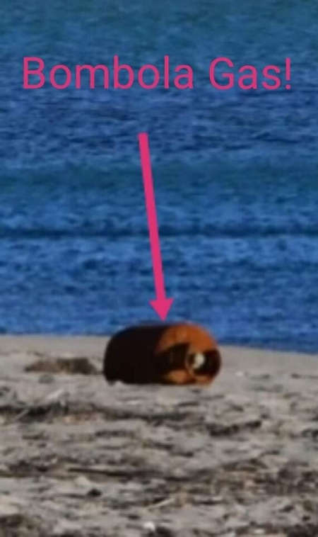 La corrente porta sulla riva, nei pressi della foce del Chidro, una bombola del gas