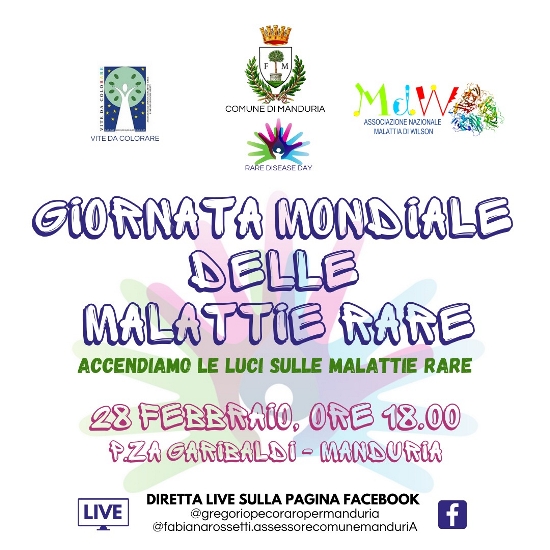 “Città più” collabora con l’Amministrazione del Comune di Manduria, con Vite da Colorare (Associazione Jonica Malattie Rare Neurologiche Gravi) e Associazione Nazionale Malattie di Wilson per accendere le luci sulle malattie rare.