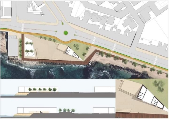 La realizzazione di tale opera, per un importo totale di 1.000.000,00 di euro, comporta inevitabilmente la demolizione del rudere insistente sulla parte esterna della piazza, di fronte al richiamato incrocio, attualmente in serio rischio di crollo, come da recente intervento dei VV.F.. La genesi dell'idea progettuale per la riqualificazione della piazza è scaturita dalla sua attuale conformazione quale "vuoto urbano", in cui non vi è un'appartenenza antropomorfa dell'ambito, ma di un contesto amorfo e privo di un valore identitario, proprio di uno spazio a valenza pubblica quale deve essere una piazza. Si è delimitato l'area con un percorso pedonale su base lignea resistente all'habitat marino, posizionandolo sulla massicciata esiste che funge da riparo alla sostruzione del basamento della piazza; tale percorso pedonale invita ad un cammino sul mare durante le belle giornate in cui poter avere una percezione visiva diretta del paesaggio marino.