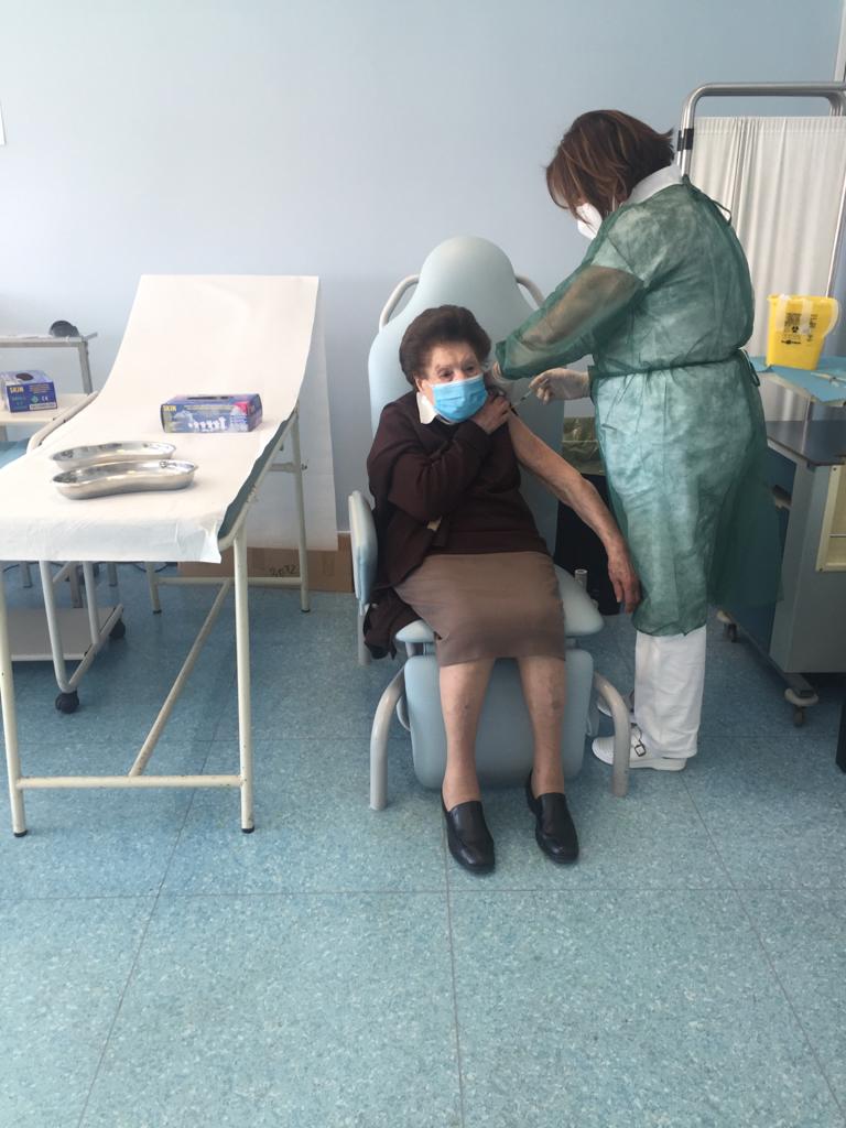 La nonnina centenaria ha fatto il vaccino anti Covid nel centro vaccinale del Presidio Territoriale di Campi Salentina e ha regalato buon umore a tutti i presenti.