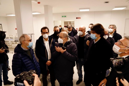 3. Un mese fa, durante il sopralluogo (si allega foto, ndr), abbiamo chiesto lumi sul raddoppio dei costi e ora leggiamo che il responsabile regionale della Protezione civile regionale sostiene che sono sorti imprevisti tali da richiedere spese non quantificabili in fase di progettazione. Domanda: come è stato possibile non quantificare in fase di progettazione le spese occorrenti per la staticità dei padiglioni o le spese per i servizi chirurgici e per la diagnostica considerato che le linee guida sono chiare in questo senso?