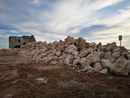 La segnalazione di una nostra lettrice: «A novembre hanno depositato tonnellate di massi. Anche il manto stradale è danneggiato»