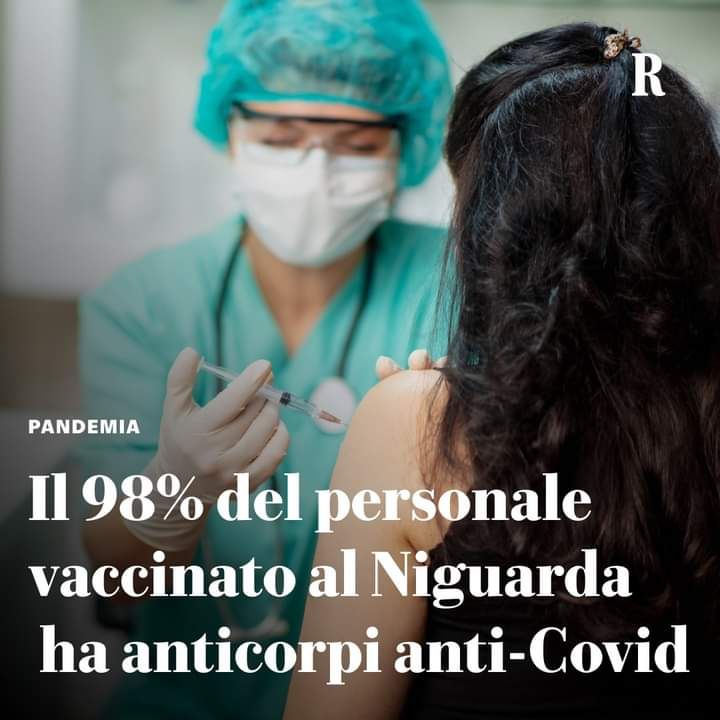 Una indagine, tra le più grandi oggi in Italia, su 2497 operatori sanitari dell'ospedale Niguarda di Milano. Per il 62,6% livelli elevatissimi di anticorpi a 14 giorni dalla seconda somministrazione del vaccino di Pfizer. si tratta dello studio clinico Renaissance (REsponse to BNT162b2 COVID-19 vaccIne: short And long term immune reSponSe evAluatioN in healthCare workers) realizzato dall’Ospedale Niguarda in collaborazione con l’Università degli Studi di Milano. Studio che monitorerà la copertura a lungo termine con prelievi a 3, 6 e 12 mesi.