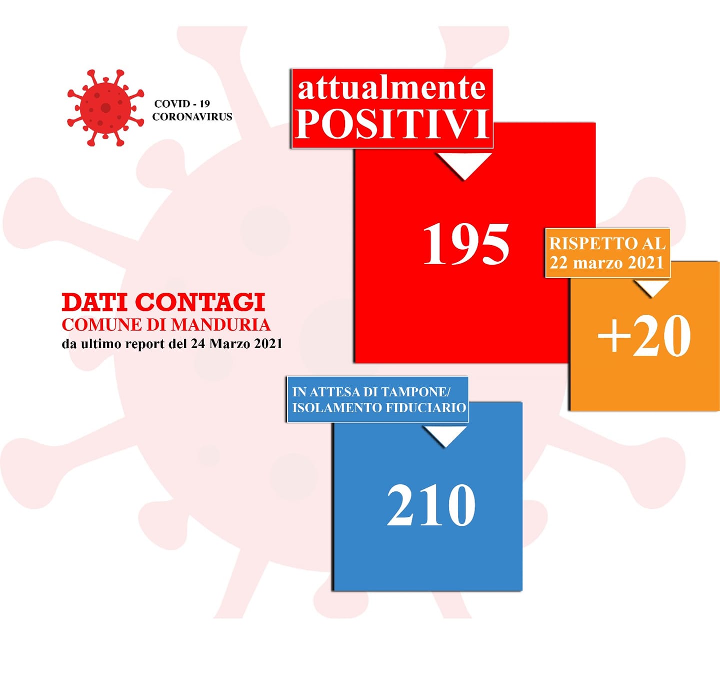 Scende invece il numero dei manduriani in quarantena: da 241 a 210.