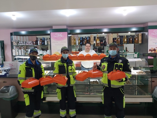«La pasticceria Le Delizie ha chiesto la nostra collaborazione» è riportato in una nota della Protezione Civile E.R.A.. «Abbiamo chiesto e ottenuto subito anche la disponibilità della Caritas di S. Maria di Costantinopoli per la distribuzione dei vassoi anche nelle famiglie da loro assistite.