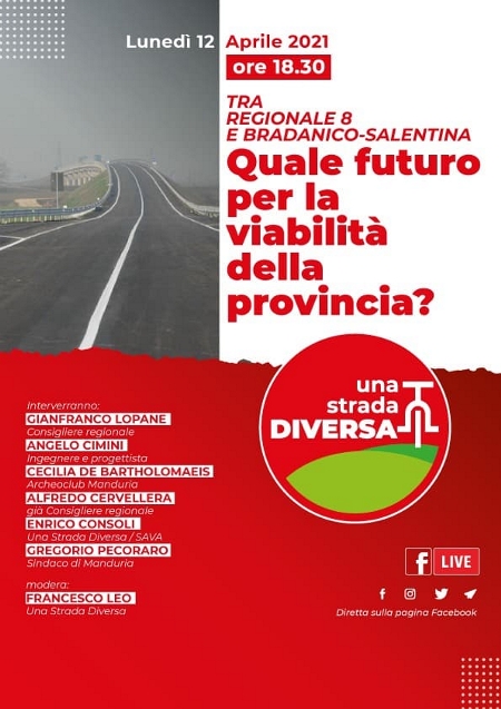 Qual è il futuro della Regionale 8, strada che dovrebbe collegare Talsano ad Avetrana e decongestionare il traffico sulla litoranea? A che punto si trovano i lavori per la Bradanico-Salentina, strada attesa da più di trent'anni e mai ultimata, che dovrebbe collegare Taranto a Lecce? In che misura queste due strade rappresentano un volano per lo sviluppo del territorio? Quali le criticità?