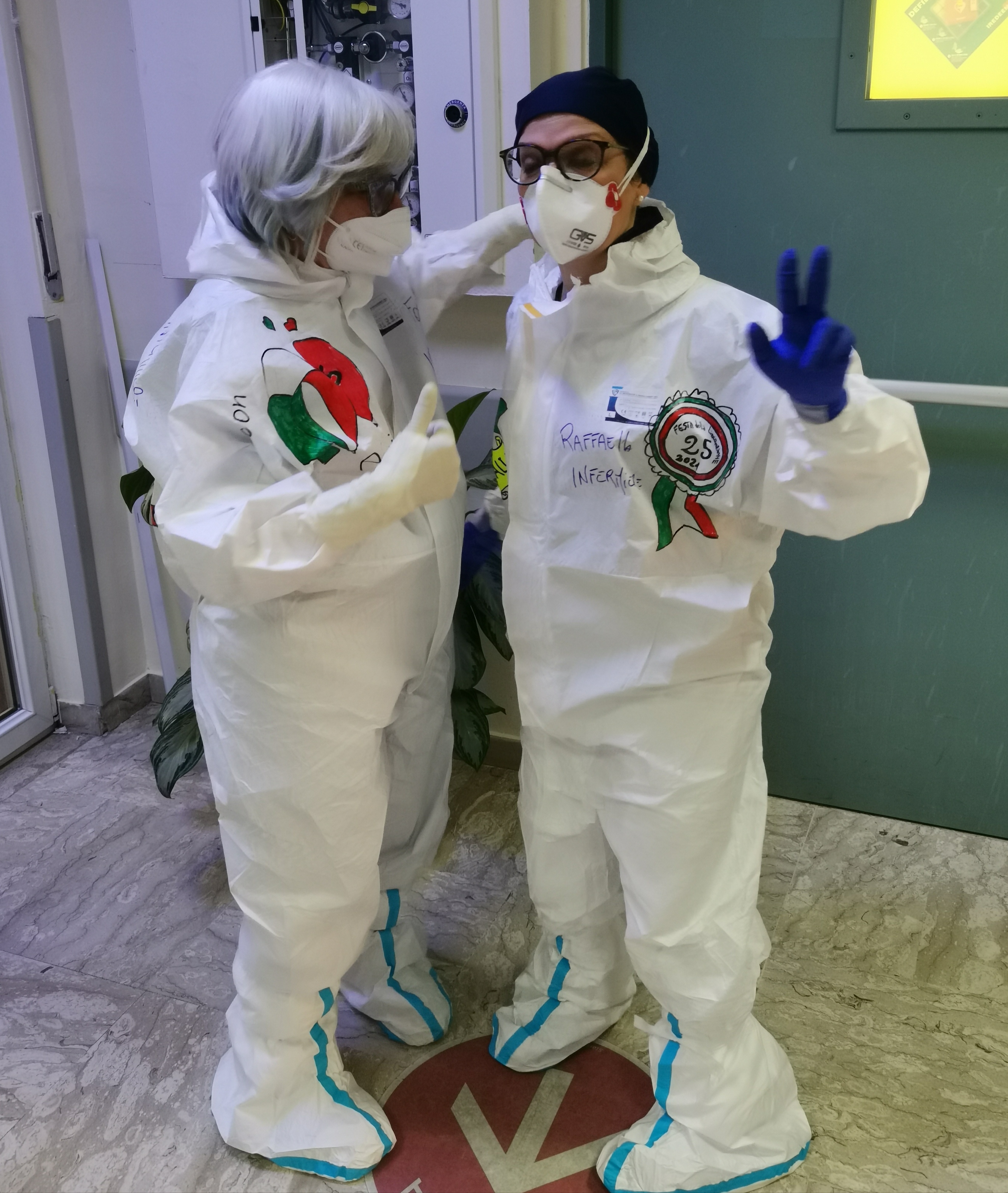 «Che belle tute vi hanno dato oggi»: il commento di un sorridente signore anziano, dietro la maschera della CPAP.