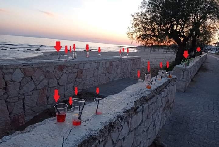 Bene, tanti avventori incivili hanno acquistato la loro bevanda, l’hanno consumata all’esterno e poi, non potendo evidentemente affaticarsi per raggiungere i contenitori per i rifiuti dei bar, hanno abbandonato i bicchieri di plastica in ogni dove. Non uno, ma, come si vede dalla foto, decine e forse centinaia…