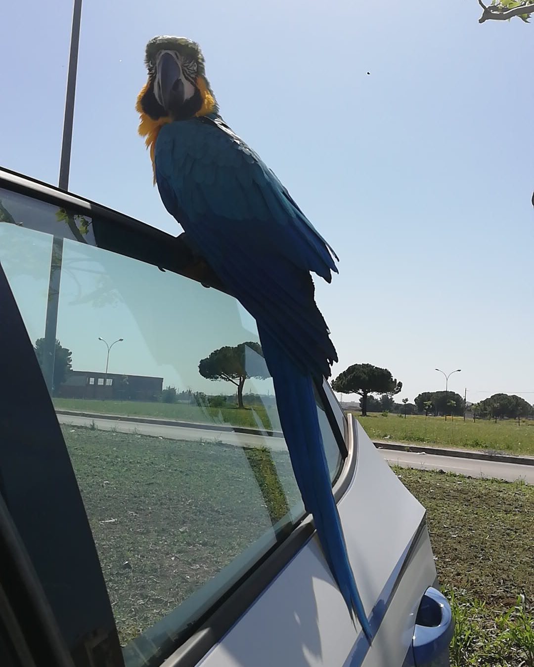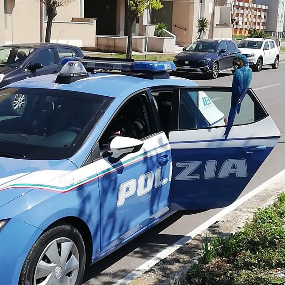 Immaginate la sorpresa dei nostri poliziotti quando si sono accorti che uno splendido e colorato esemplare di pappagallo si era appollaiato sulla portiera della Volante ferma per un posto di controllo nel Quartiere Paolo Sesto.