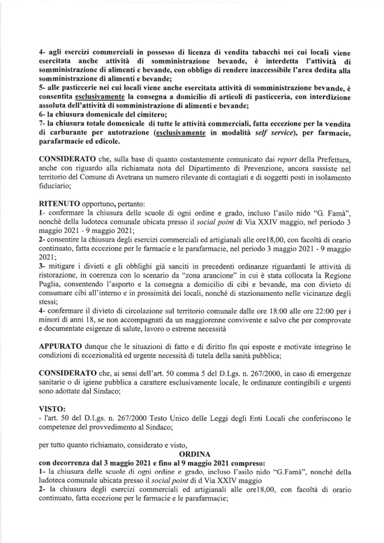 1) la chiusura delle scuole di ogni ordine e grado, incluso l’asilo nido “Famà”, nonché della ludoteca comunale ubicata presso il social point di via XXIV Maggio: