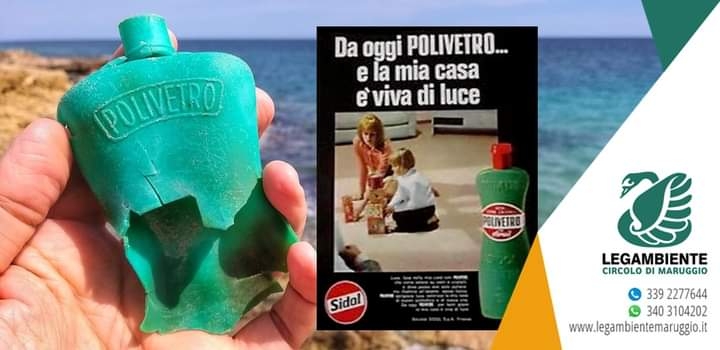 «È il Polivetro Sidol, brevettato nel 1955, pubblicizzato su Carosello e molto utilizzato a cavallo degli anni ’50 e ’70, il detergente è uscito di produzione agli inizi degli anni ’70 e, da lì in poi, si sono perse le tracce di questo marchio commerciale» è riportato nella pagina di Legambiente di Maruggio, associazione presieduta da Gianfranco Cipriani.