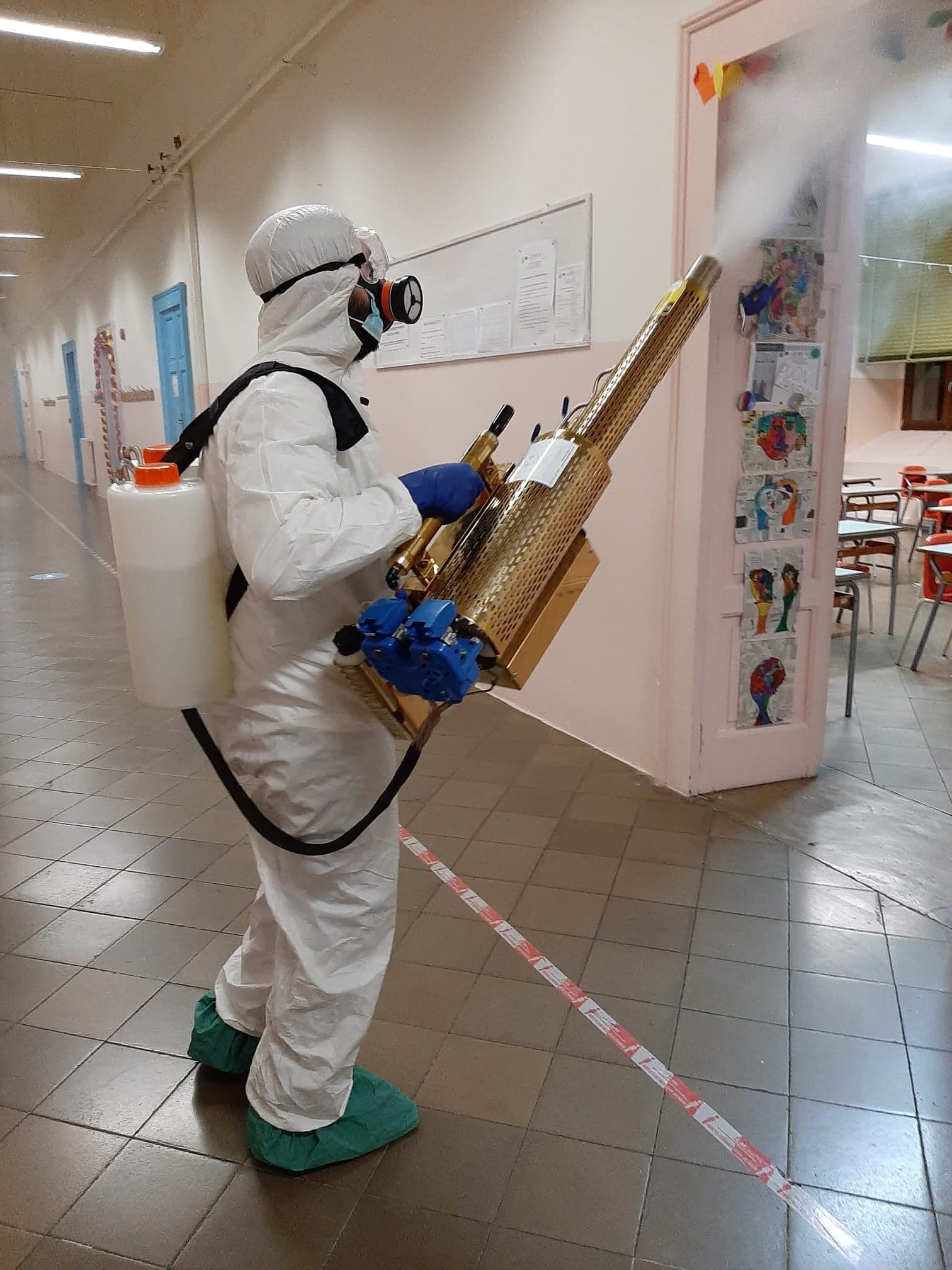 Ieri la sanificazione degli ambienti dell’istituto comprensivo “Prudenzano”