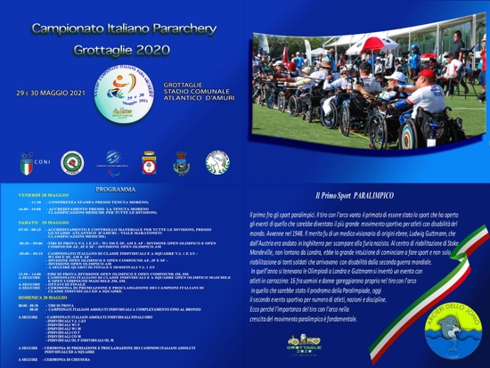 La manifestazione si terrà il 29 e 30 maggio allo stadio comunale A. D’Amuri di Grottaglie. E’ una delle iniziative nazionali paralimpiche del programma Grottaglie 2020-2021 Città europea dello sport ed è organizzata e promossa dagli Arcieri dello Jonio, dalla Fitarco (Federazione italiana tiro con l’arco) nazionale e Puglia, dal Cip Comitato italiano paralimpico, dal Coni, dalla Regione Puglia e dal Comune di Grottaglie.