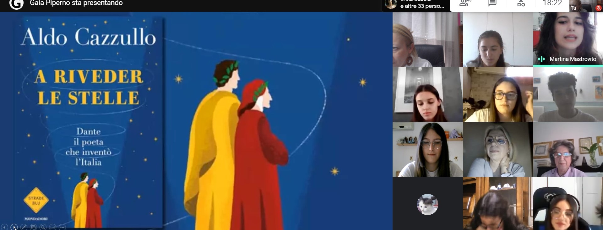 E per concludere, dal momento che “Il Maggio dei Libri” invita a portare i libri e la lettura anche in contesti diversi da quelli tradizionali, per intercettare coloro che solitamente non leggono ma che possono essere incuriositi se stimolati nel modo giusto, gli studenti liceali hanno proposto la recensione di quattro libri, tra quelli più rappresentativi del momento, ispirati al padre della lingua italiana, al fine di trasmettere e condividere con gli intervenuti al collegamento on line quanto la figura di Dante Alighieri e le sue opere siano ancora oggi così vicini al nostro sentire e al nostro modo di interpretare la realtà.