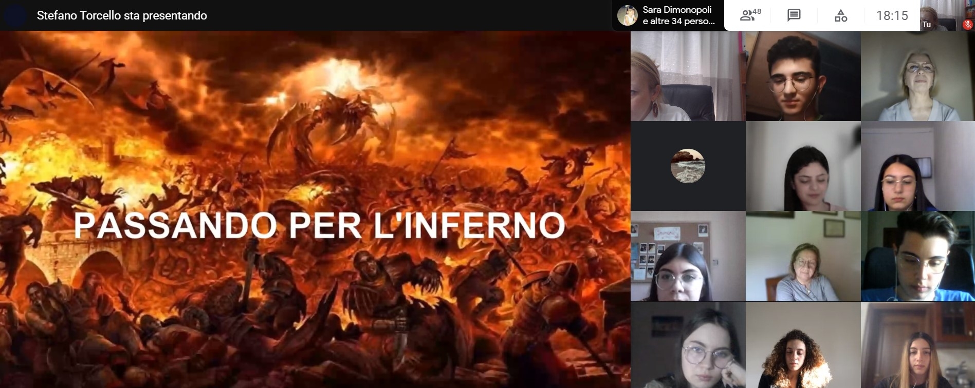L’incontro, tenutosi in modalità di videoconferenza (trasmessa anche in diretta Facebook), ha visto protagonisti gli alunni delle classi 3BL, 3AS, 3BS e 3BSU, a cui si è aggiunta la partecipazione, in veste di special guest, dello studente Marco Pesare, frequentante la classe 2BC e reduce dalla vittoria riportata nella fase nazionale della X edizione delle “Olimpiadi di italiano”, dove ha sbaragliato la concorrenza di circa 12mila partecipanti, classificandosi al primo posto nella categoria Junior, area Liceale.
