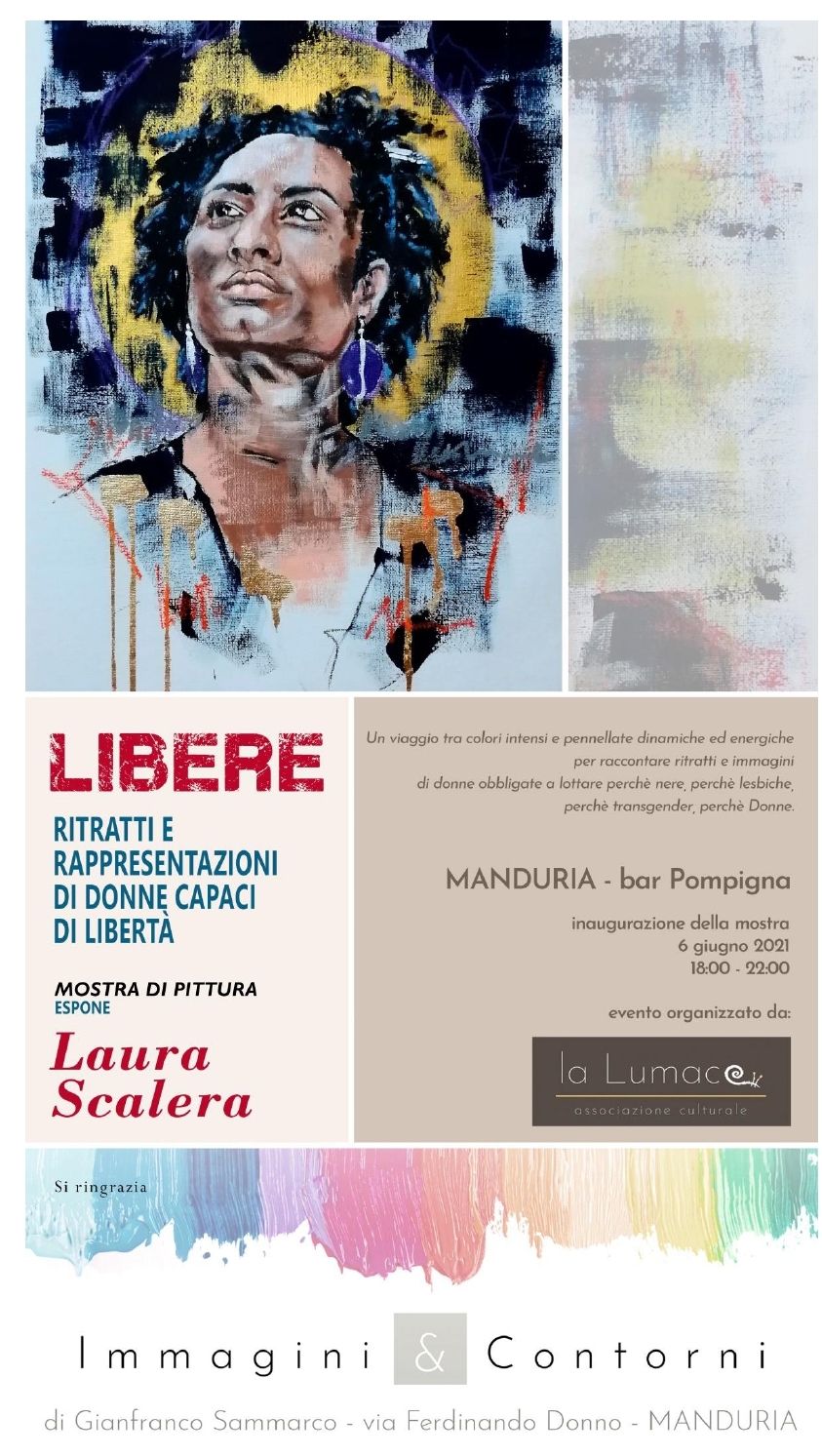 L’associazione culturale “La Lumaca” inaugura domenica 6 giugno 2021, presso il bar Pompigna, la mostra di pittura dell’artista mesagnese Laura Scalera.