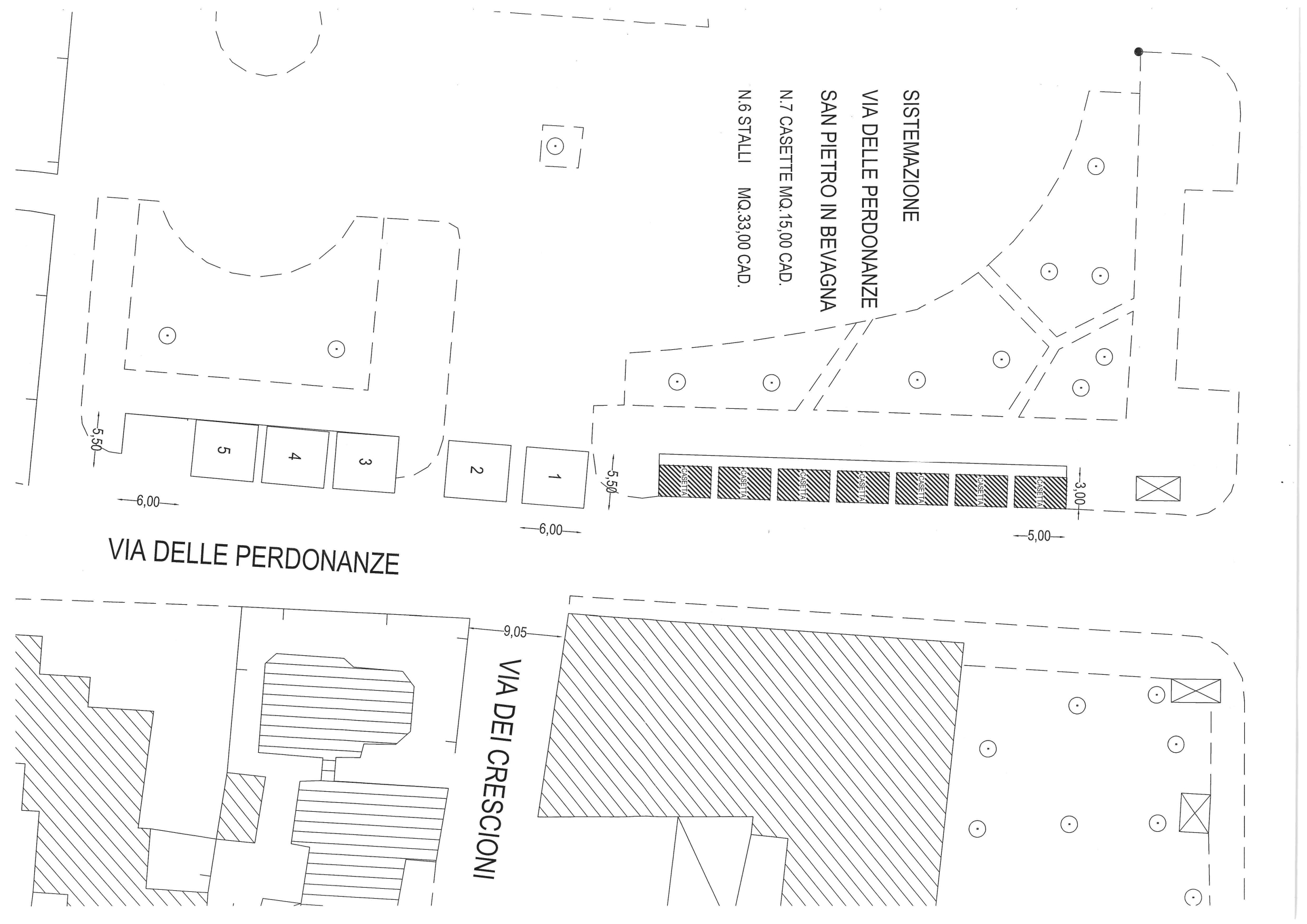 STALLI NELL’AREA ANTISTANTE LA PINETINA – Sono complessivamente 21, delle seguenti dimensioni: 17 stalli di 6 ml x 6 ml; 2 stalli di 6 ml x 8 ml; uno stallo di dimensione 6 ml x 12 ml; uno stallo di dimensione 6 ml x 3 ml.