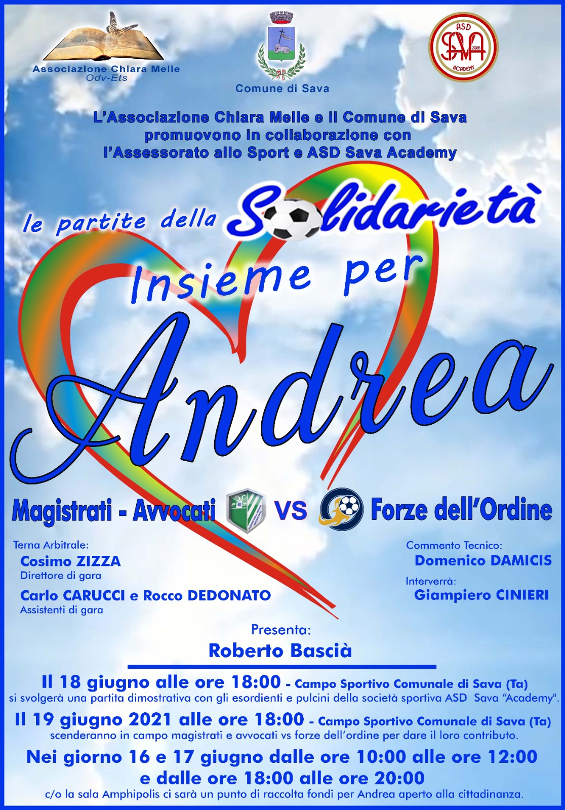 L’associazione “Chiara Melle”onlus e il Comune di Sava, in collaborazione con la società sportiva ASD Sava “Academy” e l’assessorato allo Sport, indicono due giornate all’insegna della solidarietà che si terranno nei giorni del 18 e 19 giugno presso il campo comunale “Francesco Camassa" di Sava.