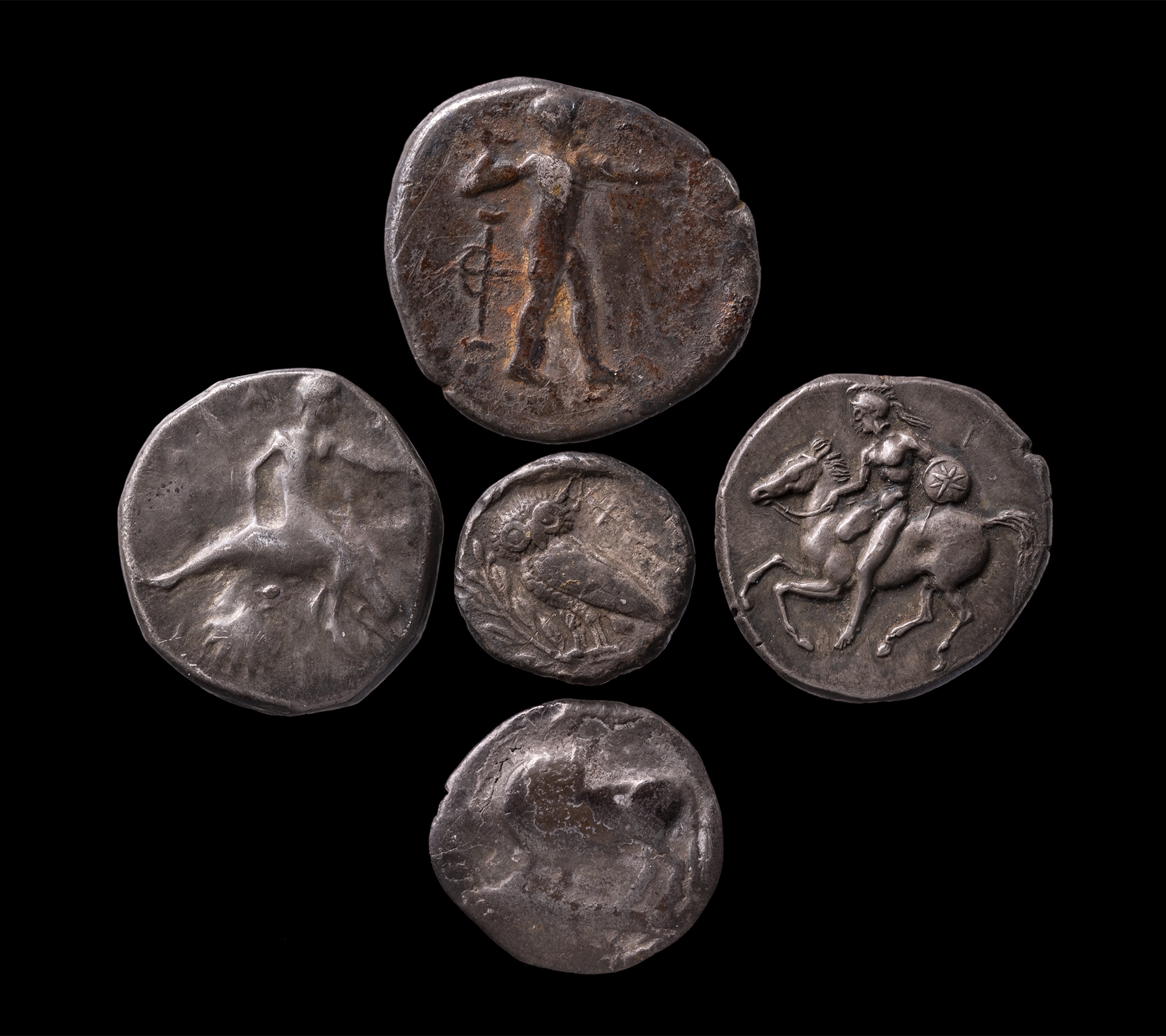 Il “ripostiglio” di Maruggio candidato al restauro è costituito da 36 monete della prima metà del IV secolo a.C. Provenienti da Lizzano sono invece le 43 monete d’argento e una di bronzo della seconda metà del IV secolo a.C.