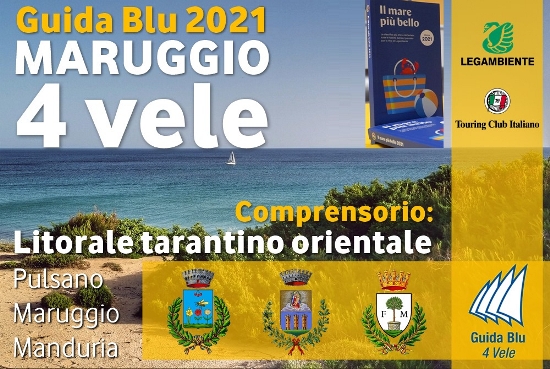 Il mare più bello 2021, la Guida di Legambiente Onlus e Touring Club Italiano, riassegna anche per quest’anno le 4 vele a Pulsano, Maruggio e Manduria, uniti nel comprensorio “Litorale tarantino orientale”.