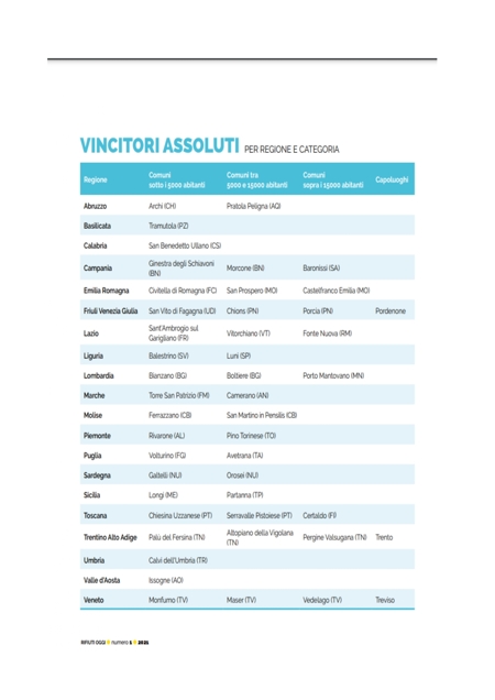 Da quest’anno la nostra cittadina ha ricevuto un premio avendo incrementato il servizio pro capite di raccolta differenziata, in un solo anno, del 20 per cento grazie anche all’estensione del servizio di raccolta porta a porta su base dati 2020. Questo risultato, ottenuto grazie alla collaborazione tra Ufficio tecnico e l’attuale gestore Universal Service (responsabile dei servizi di igiene urbana), è stato raggiunto anche mediante una costante azione di controllo e di formazione al cittadino, sia in modalità diretta che tramite campagne informative, mirate a migliorare i servizi e la qualità dei rifiuti raccolti in forma differenziata. Si tratta di un appuntamento importante per conoscere lo stato della raccolta differenziata nel nostro paese e un’opportunità di confronto per i Comuni e i Consorzi che quotidianamente operano sui territori per garantire una buona gestione dei rifiuti urbani.