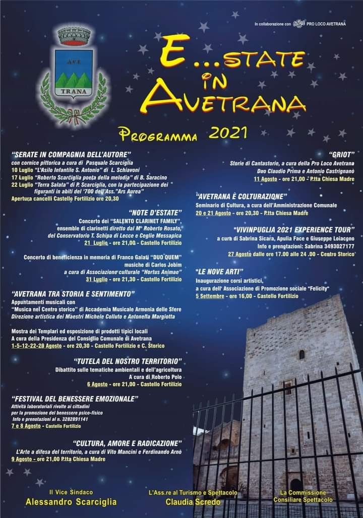 Definiti gli eventi cultuali del cartellone “E…state in Avetrana”. Ecco il programma completo, suddiviso in diverse sezioni.