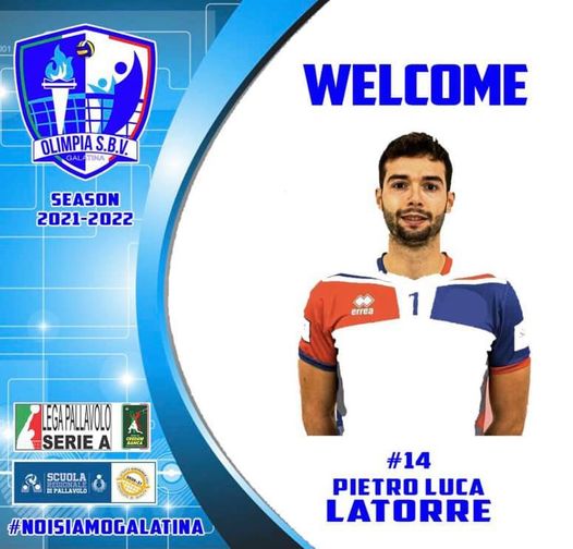 Tarantino di Torricella, classe ’94, 185 cm, Latorre è un prodotto del vivaio del Volley Torricella con cui disputa i campionati giovanili mettendosi in evidenza in quelli di serie D, C e B2 per poi fare il gran salto in serie A2 con la Materdomini. Non prima però di conquistare il titolo di campione d’Italia di beach volley under 21 in coppia con il salentino Giorgio Mazzotta a Catania, preceduto nel 2013 da un premonitore quarto posto nel campionato nazionale Under 19 di beach volley in coppia con il salentino Mazzotta ,che lo proietta nell’orbita Accademy Castellana, sotto la guida di mister Fanizza. Il biennio nella città delle Grotte lo vede, con 48 presenze, offrire una valida alternativa a Pedron, destando l’interesse di Olimpia Sbv che lo annette nei suoi ranghi nella stagione 2016-2017. Il settimo posto nella classifica finale è frutto anche della sua grande continuità di rendimento e del suo estro nella gestione delle gare. E’ un emergente risoluto a cui non fa difetto la grinta agonistica a compendio delle sue innegabili doti tecniche. Peculiarità che gli valgono la chiamata in serie B alla M2g Pallavolo Bari di mister Cavalera per due stagioni, con cui sfiora la promozione in serie A2 (2017-2019). Poi è storia dei nostri giorni: il ritorno nel Salento al servizio di Tricase e Casarano ed oggi in casa Olimpia Sbv.