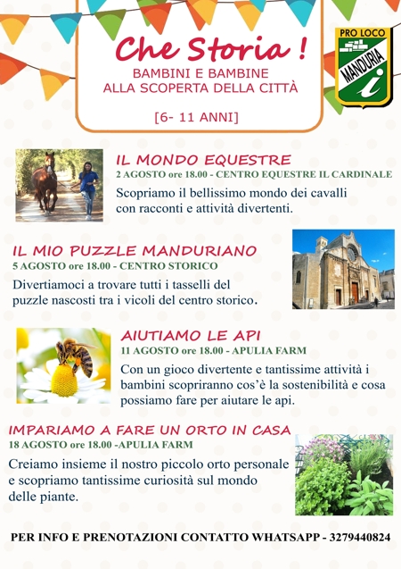 La Pro Loco di Manduria, con l’arrivo della bella stagione, presenta il proprio cartellone di eventi estivi dedicati ai più piccoli.