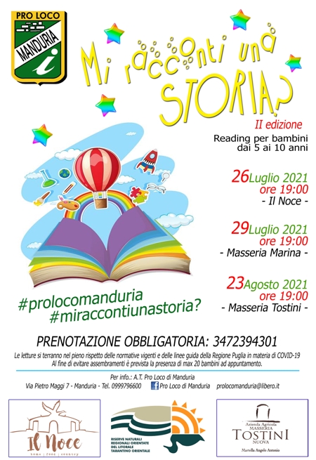Ma non finisce qui perché, per intrattenere il pubblico dei giovanissimi, la Pro Loco ha dato vita alla seconda edizione dei “Reading” itineranti. Tre tappe dove ad allietare i giovani spettatori ci saranno personaggi divertenti e particolari, i quali, attraverso le loro avventure li prenderanno per mano conducendoli in mondi ricchi di fantasia.