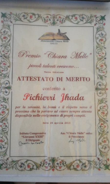 Non si può che lodare questa ragazza, da sempre molto sensibile e altruista. Non è un caso se, per due volte, è stata scelta dai suoi compagni di classe per ricevere il riconoscimento dell’associazione “Chiara Melle”, che intende premiare gli studenti che si distinguono proprio per solidarietà e altruismo.