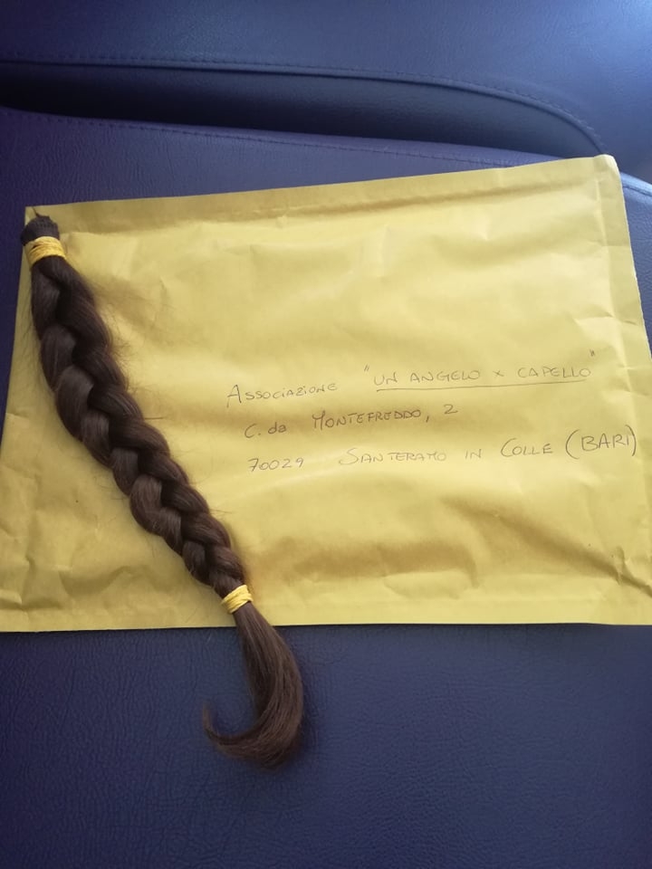 Jhada ha tagliato la sua lunga treccia (circa 30 cm) per donarla all’associazione “Un angelo per capello” di Santeramo in Colle