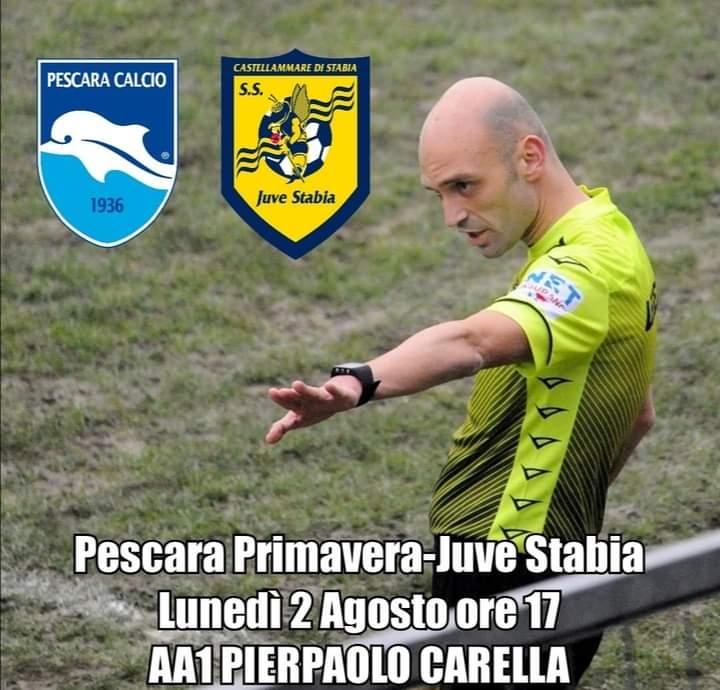 L’assistente Pierpaolo Carella nella terna arbitrate dell’amichevole fra Pescara Primavera e Juve Stabia. Carella, iscritto alla sezione AIA de L’Aquila, è stato l’assistente numero 1 dell’arbitro.