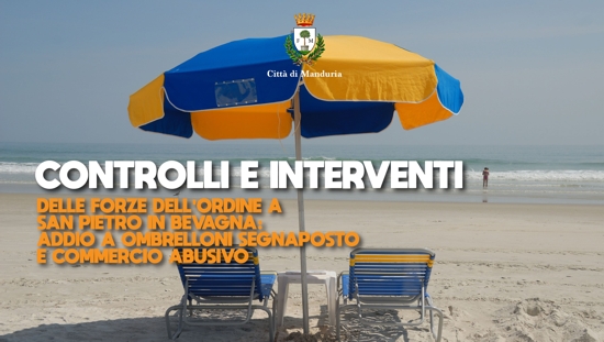 Il sindaco di Manduria Gregorio Pecoraro rende noto alla cittadinanza che questa mattina, 12 agosto, la Polizia di Stato, in collaborazione con la Polizia Locale, ha effettuato serrati controlli nella marina di San Pietro in Bevagna per contrastare il commercio abusivo e la vendita di prodotti contraffatti, oltre che nei confronti dei cosiddetti “bagnanti fantasma”, ovvero quei soggetti che “prenotano” un posto nelle spiagge libere depositando asciugamani, sdraio ed ombrelloni per poi assentarsi e ritornare successivamente nel corso della giornata o addirittura il giorno successivo.