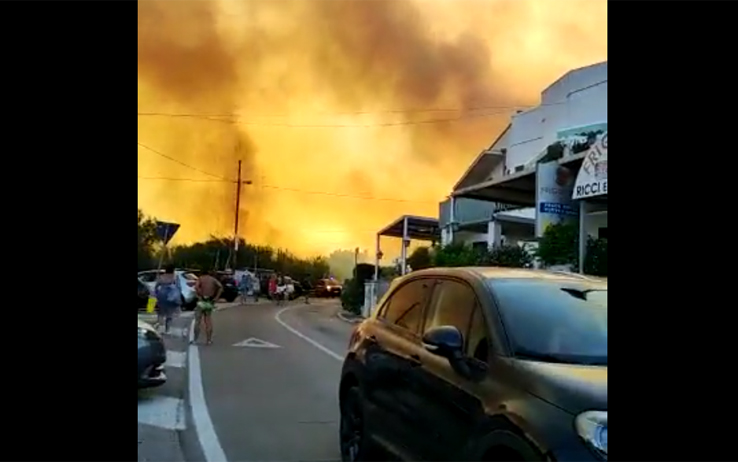 Stessa sorte è toccata agli ospiti di un resort presente in zona, dove è stato disposto uno sgombero precauzionale. Il panico si è scatenato anche tra turisti e bagnanti, che hanno cercato di allontanarsi rapidamente dalla zona, dove il fuoco continua ad estendersi rapidamente, alimentato dal vento di tramontana che soffia da questa mattina, bruciando diversi ettari di vegetazione e macchia mediterranea.