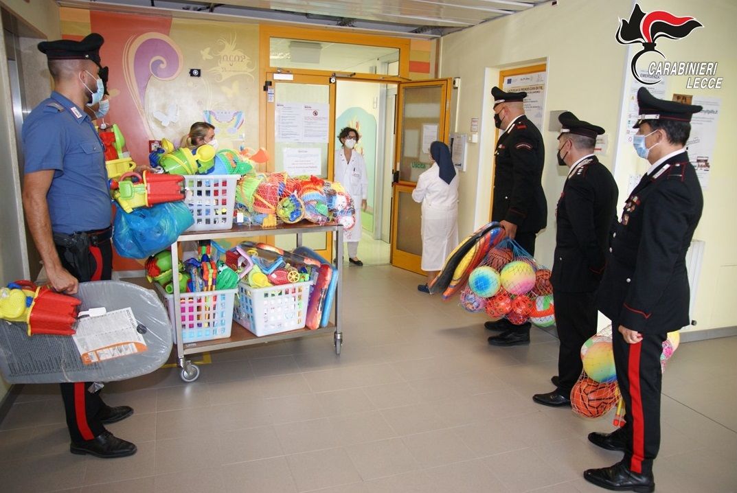 I carabinieri del Comando della Compagnia di Campi Salentina e della Stazione di Porto Cesareo si sono recati presso il reparto di Onco-Ematologia Pediatrica dell’ospedale ‘Vito Fazzi’ di Lecce, dove hanno consegnato dei giochi da mare per i piccoli pazienti ricoverati.