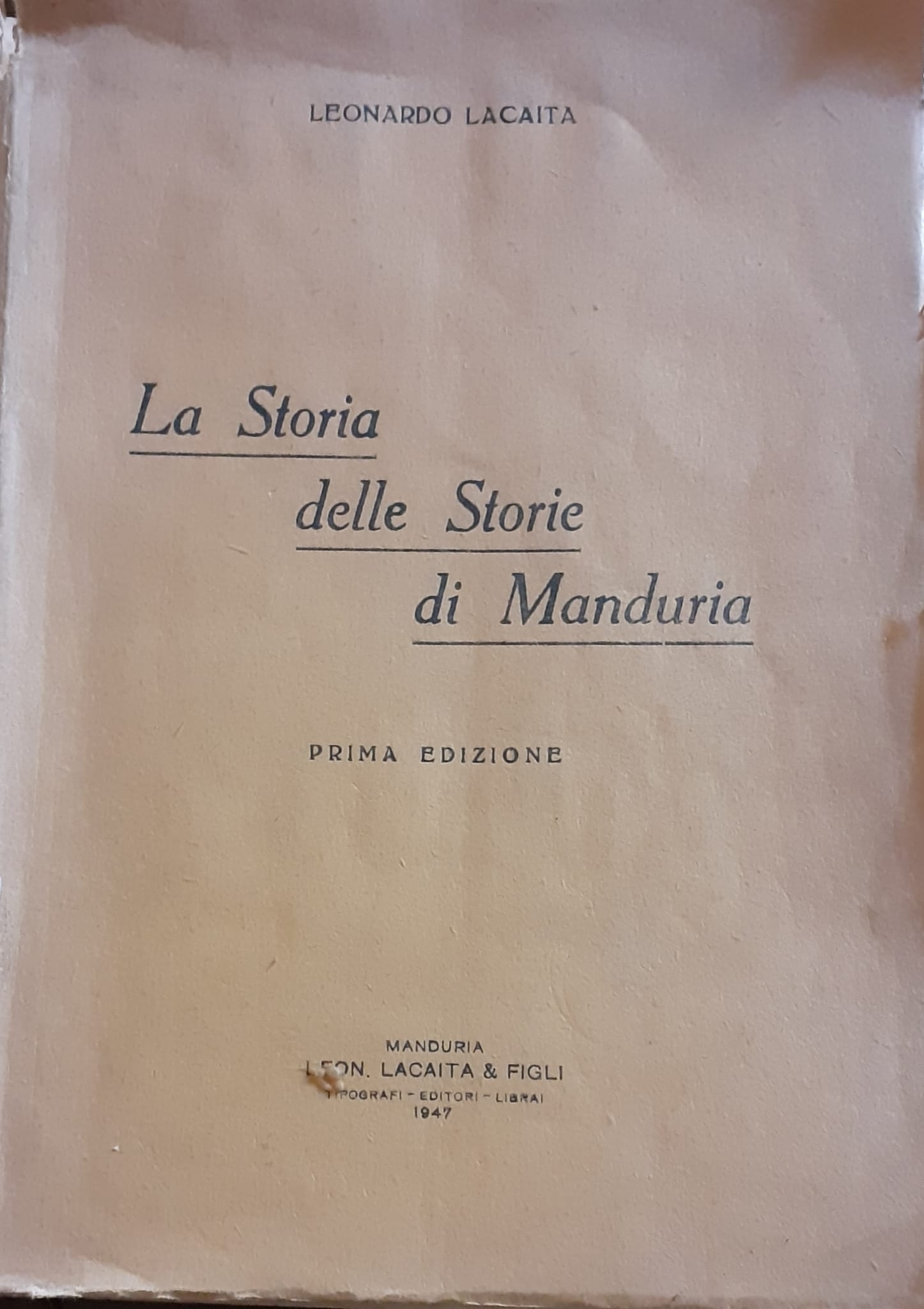 E poi accade che cercando un'opera in biblioteca se ne resti piacevolmente intrappolati in un un'altra, e in un’altra ancora fino a quando lo sguardo cede ad un titolo intrigante nella sua semplicità, La Storia delle Storie di Manduria, un volume dall’aspetto vissuto e dall’indiscutibile fascino che sempre emanano i libri antichi dalle loro pagine color ambra. L’autore, Leonardo Lacaita, suddivide il libro in tre epoche storiche, Antica, Medioevale, Moderna e Contemporanea e articola il racconto della storia, dei fatti e di alcuni personaggi illustri di Manduria in una forma simpatica e tanto originale.